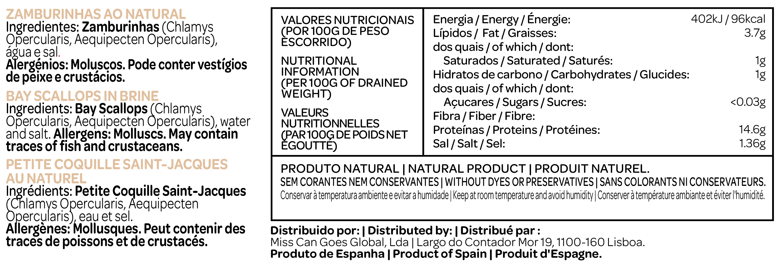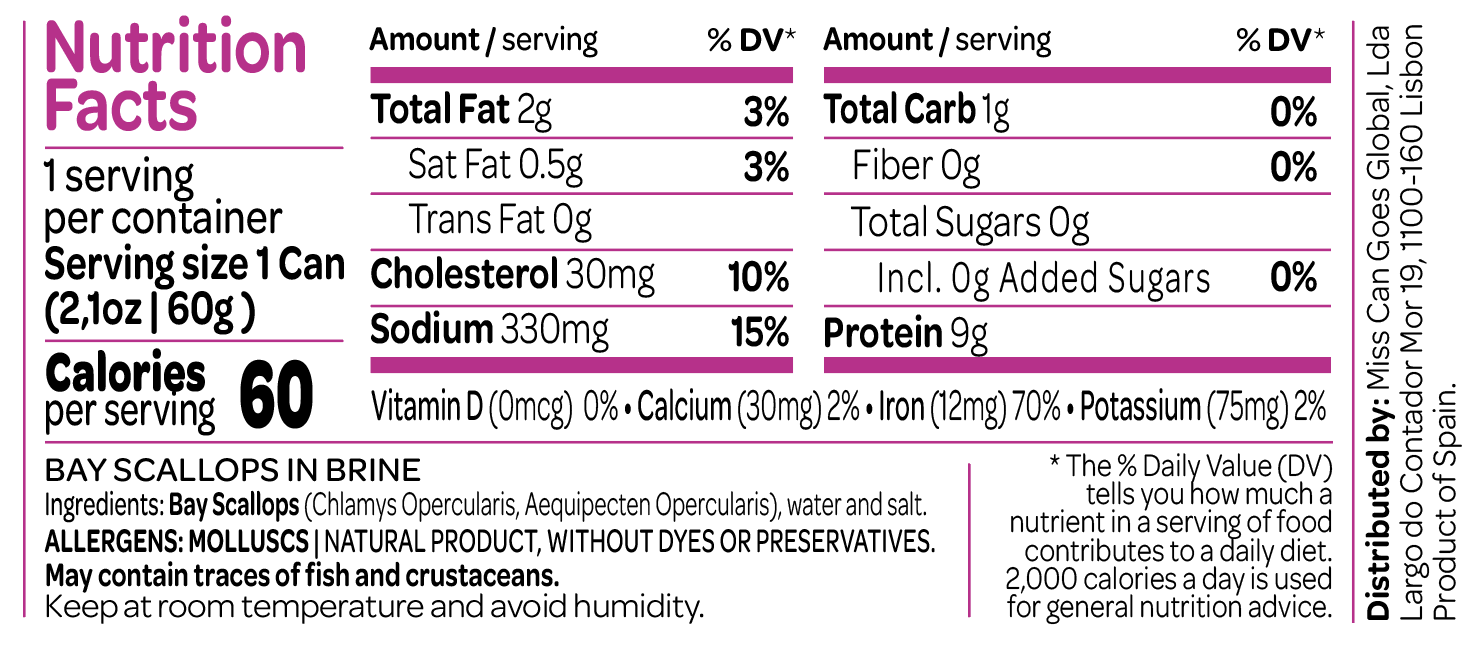 Selected Bay Scallopes preserved naturally in seawater, without distractions. Just the essentials.